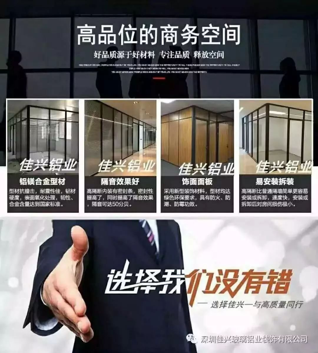 深圳市佳兴铝业办公高隔断绿色环保又隔音,办公室玻璃隔墙首选